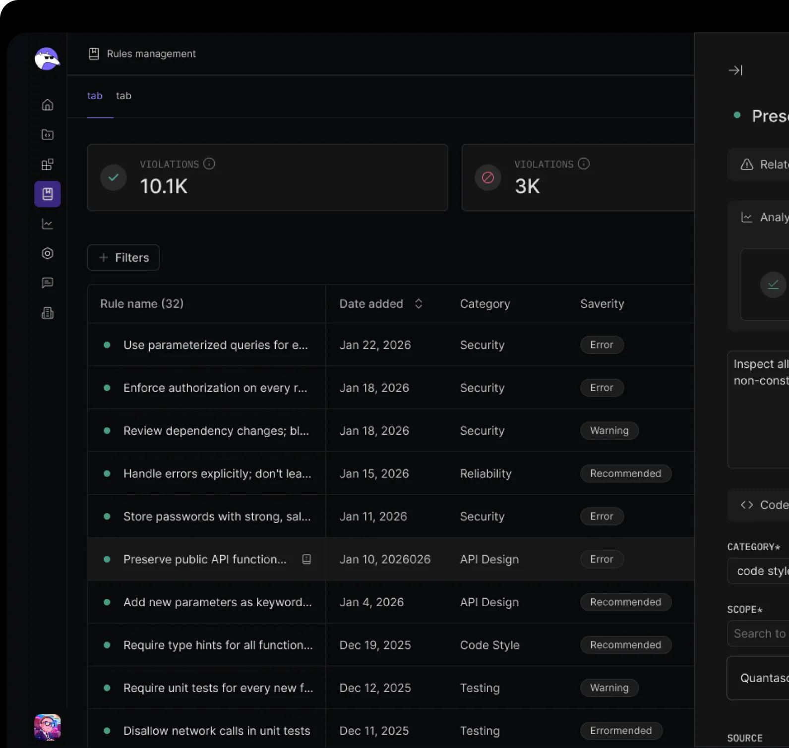 Code Reviewwith your rules & standards.for complex codebases.that continuously learns.with #1 precision & recall.
