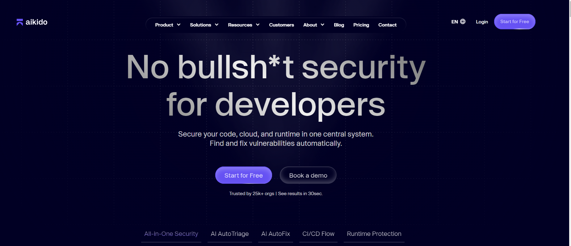 - Integrated open-source & proprietary scanners: Uses a mix of trusted open-source scanners (Bandit, Semgrep, Gosec) and Aikido’s own tools for enhanced accuracy.