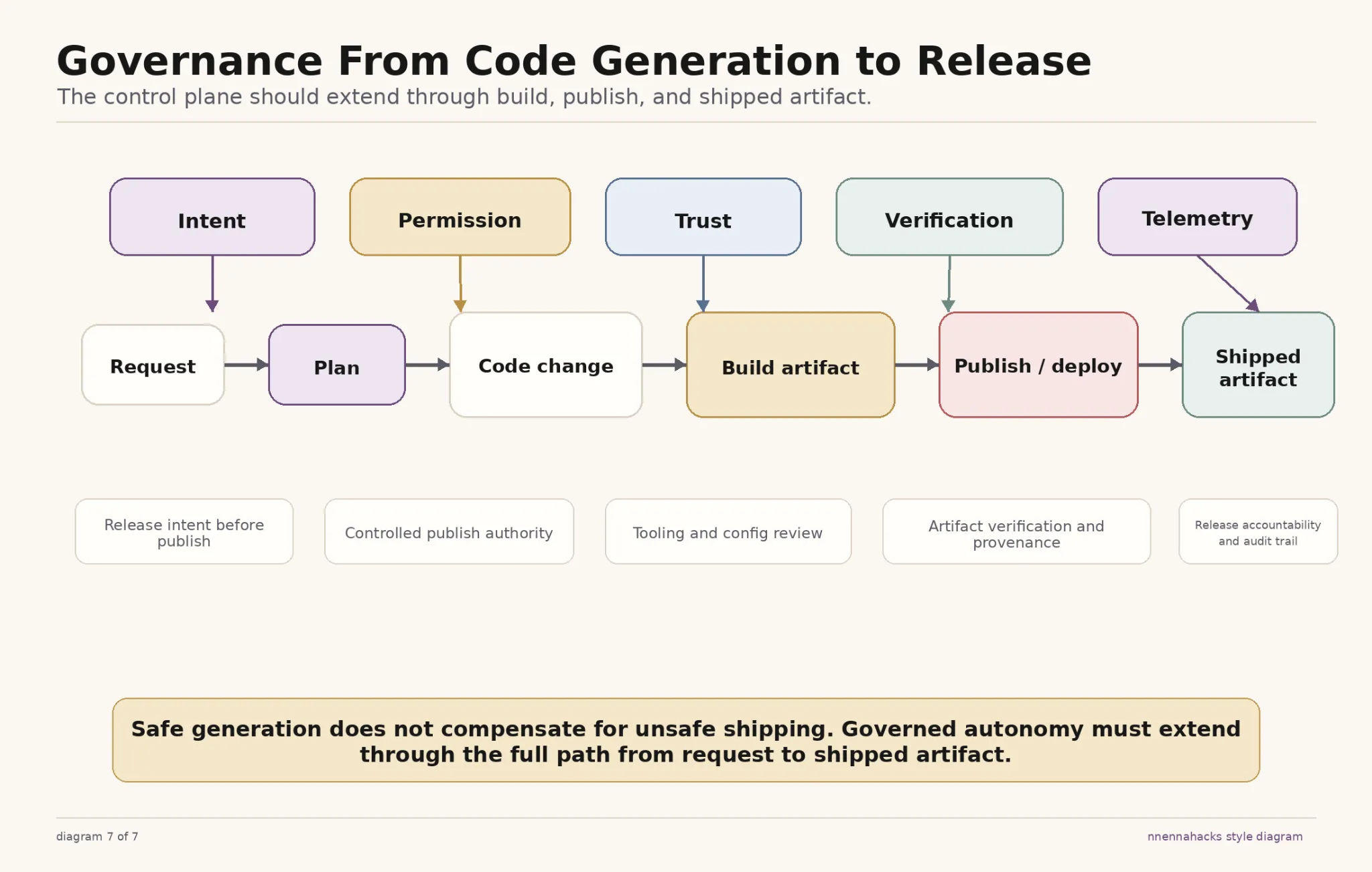 That distinction is critical. Many AI coding conversations end too early. We talk about planning, generation, review, and verification during implementation. Then we treat packaging and release as a separate operational detail.