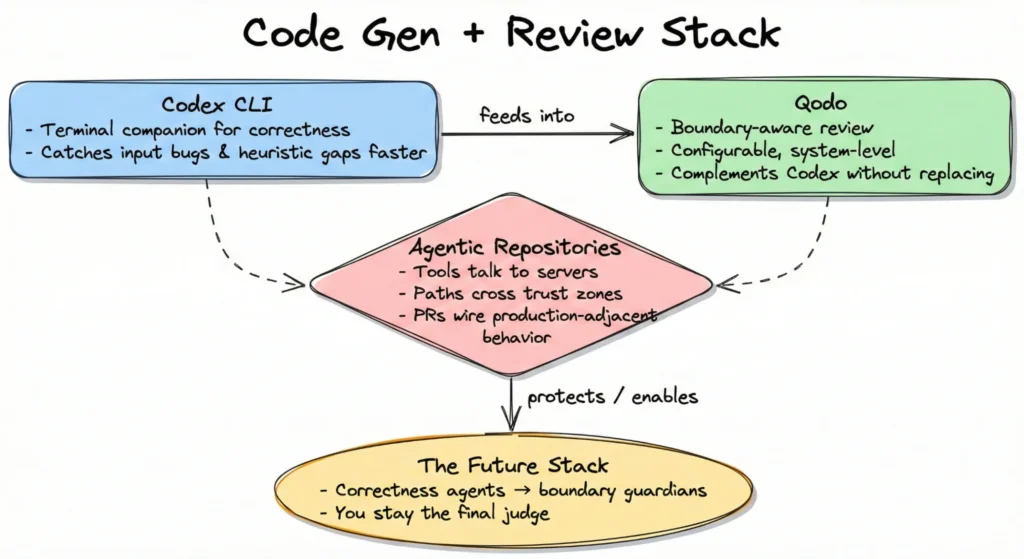 The good mental model is Codex CLI for hardening the behavior of each change and Qodo to protect the system those changes live in.