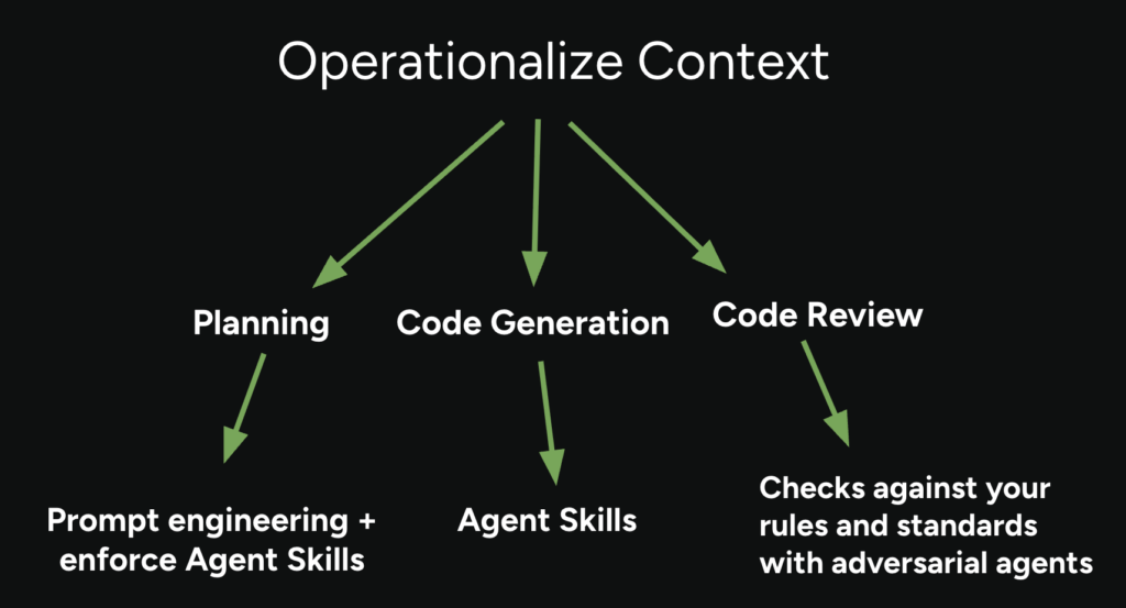 “Written somewhere” is not the same as operationalized everywhere. AI makes this worse by increasing code volume before most teams have improved the reliability of their context.