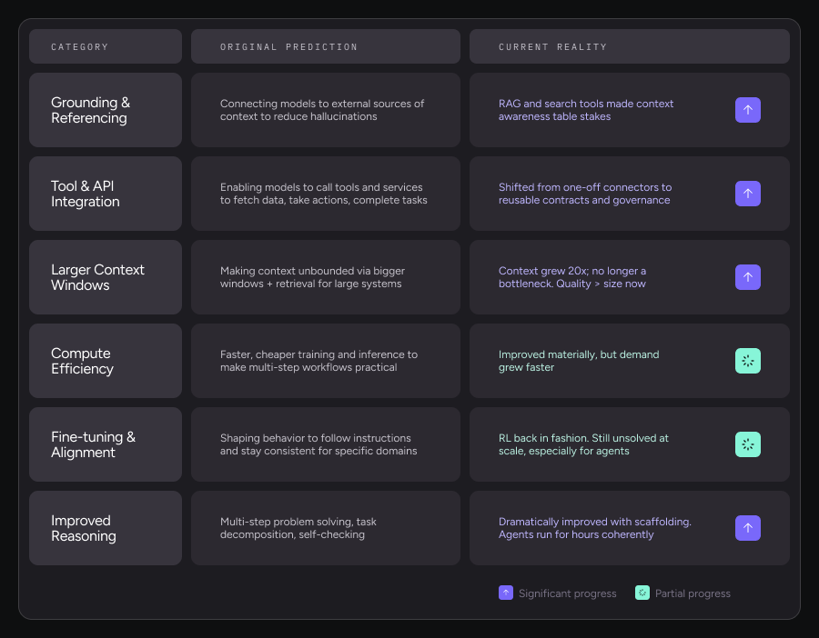 The original argument in my 2023 post was specific: for AI to move beyond chatbots to operational intelligence, real acceleration would come once six categories of breakthroughs matured: