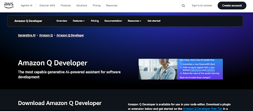 - Amazon Q Developer provides strong support for AWS-specific languages and frameworks, along with other popular programming languages such as Python, Java, and JavaScript.