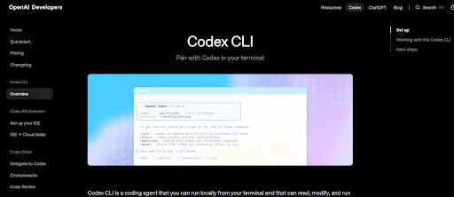 Codex CLI is an open-source, Rust-based coding agent that runs directly from the terminal. It can read and modify your local code, execute commands, and interact with your repository in an isolated environment. Official support covers macOS and Linux; Windows works via WSL. You can install it with npm install -g @openai/codex or brew install codex, then authenticate using a ChatGPT plan or API key.