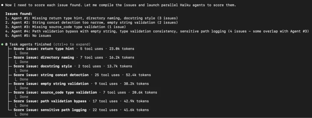 This judge launched multiple Haiku agents to score the issues.