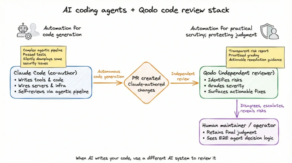 Claude Code as co-author, Qodo as independent reviewer