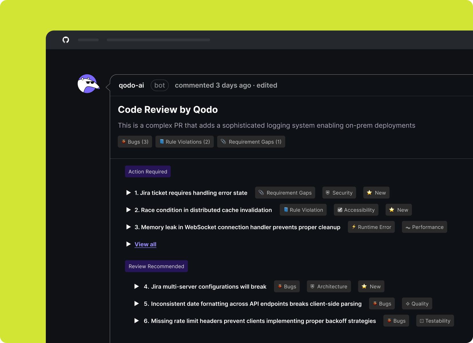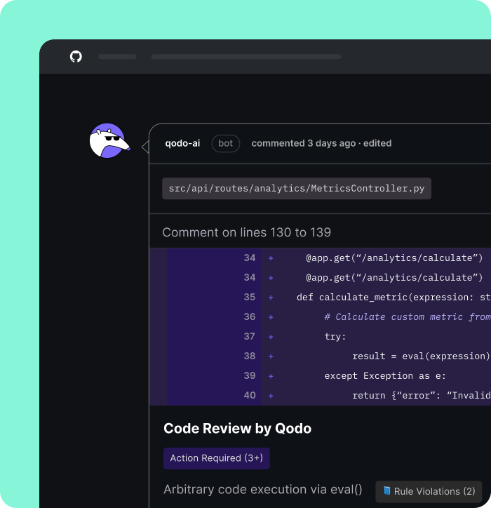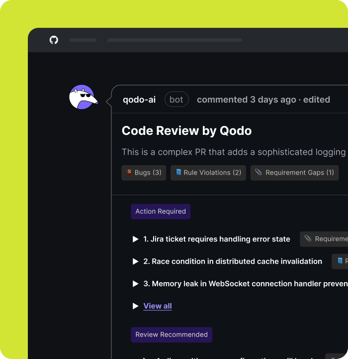 Both platforms automate pull request reviews, but they are built for different levels of control and governance. Qodo is designed for teams that need enforceable standards, structured governance, and AI code review that scales consistently across their organization.