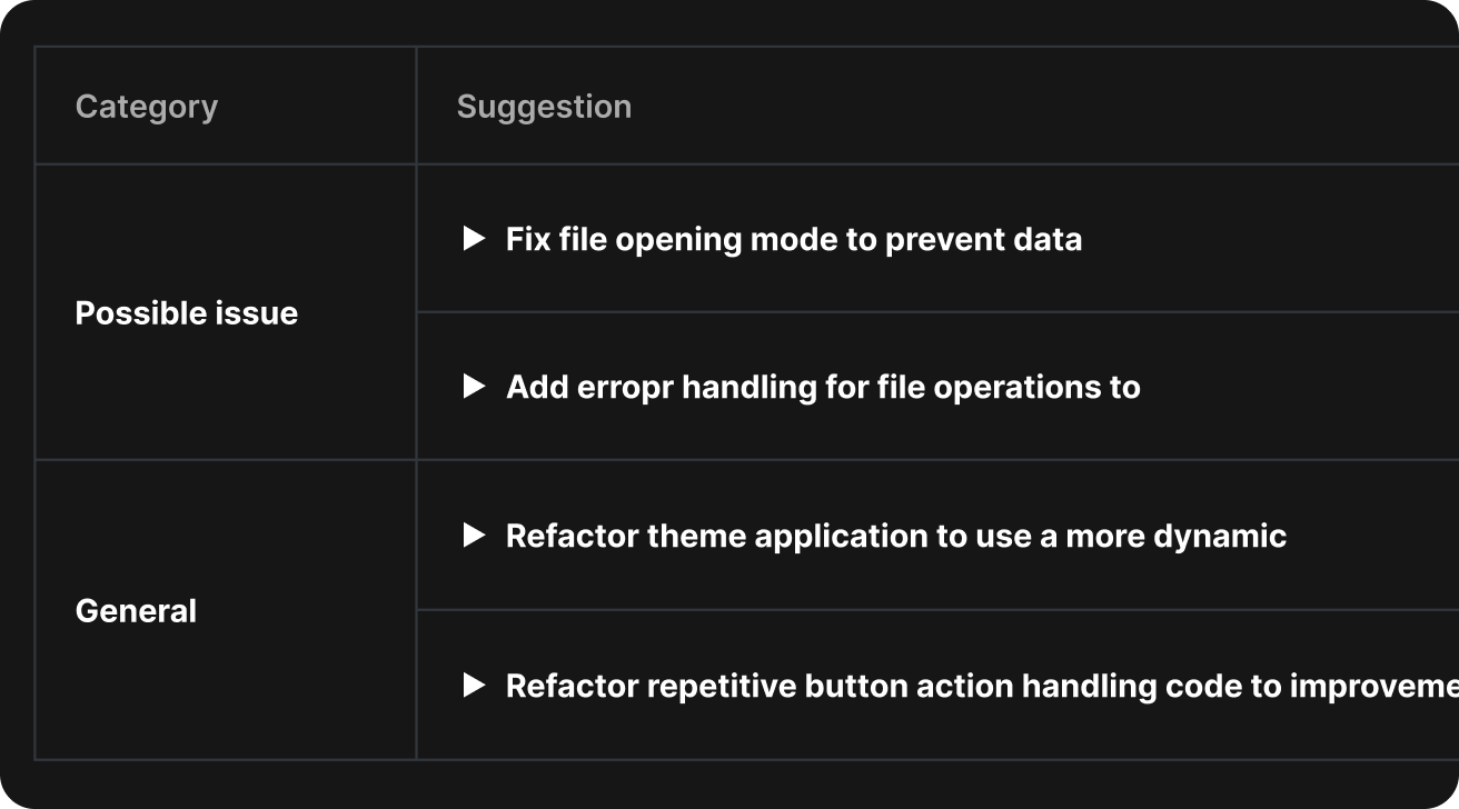 Ship clean PRs: generate missing until tests and documentation inline. Apply safe fixes or open a follow-up branch from suggestions.